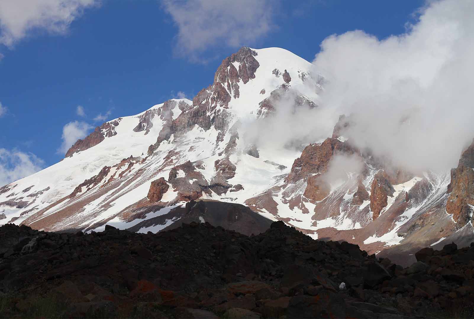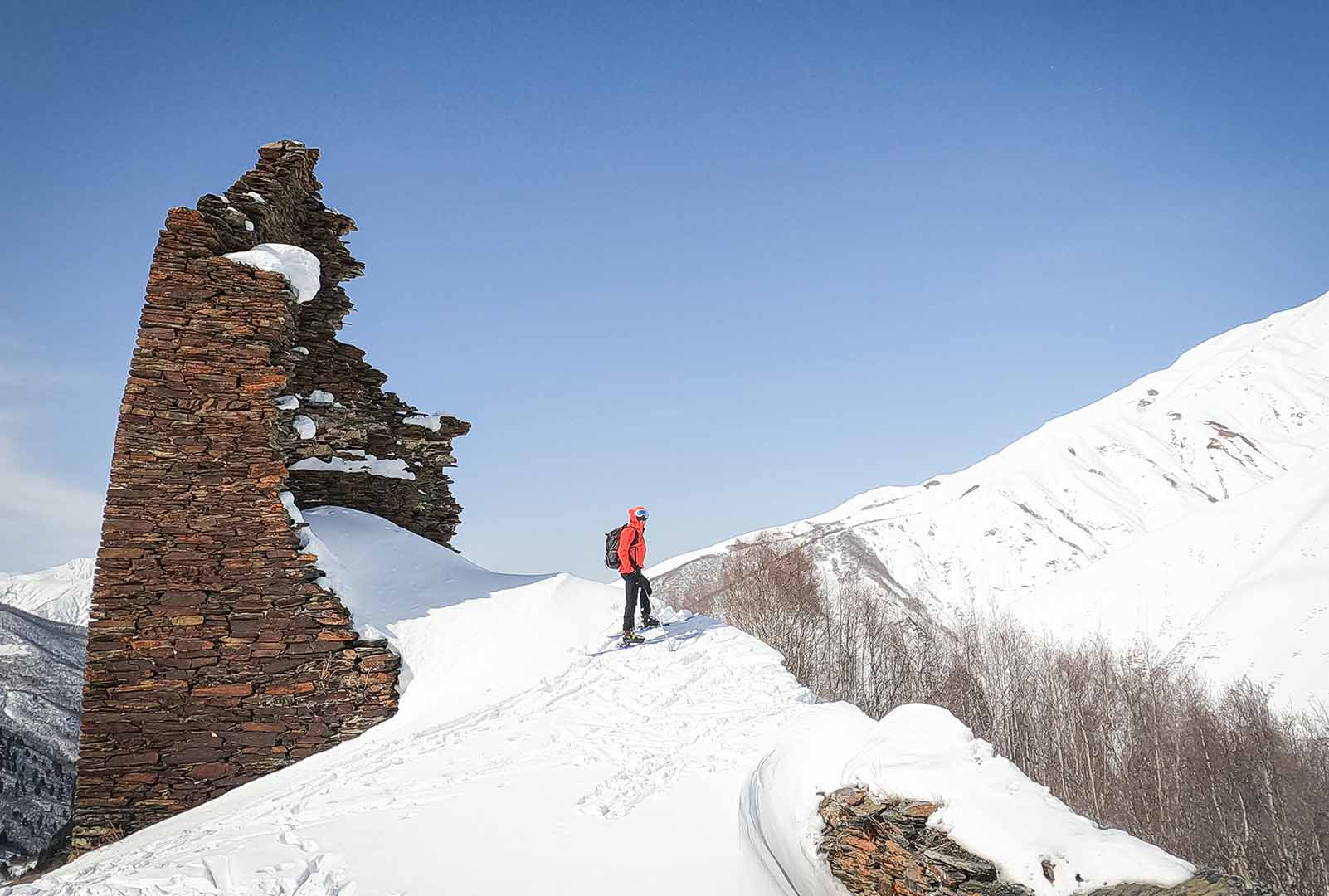 Na jaře, v období duben–květen, jsou podmínky ideální pro skialpinistický výstup na Kazbek. Cesta vede přes ledovec, sněhové pláně a mezi trhlinami – obvykle bez davů, v tichu a klidu, který se v jiných horách hledá těžko. V závěrečných pasážích pomohou mačky a cepín, a když staneme na vrcholu, čeká nás panorama, na které se nezapomíná. Sjezd na lyžích z Kazbeku je odměnou za všechnu námahu. Z vrcholu až do údolí je to více než 3000 výškových metrů