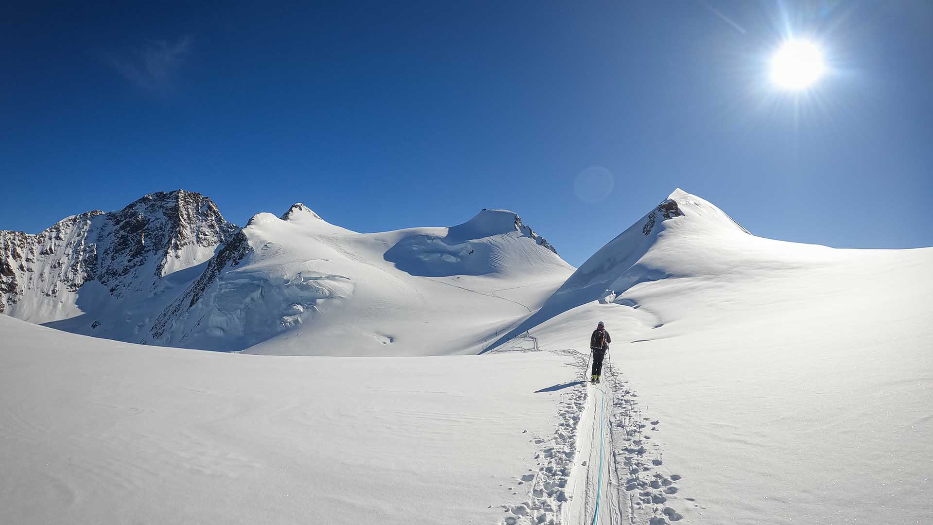 Zažij jeden z nejkrásnějších skialpinistických přechodů v Alpách! Během pěti intenzivních dnů projdeme klíčovou část masivu Monte Rosa na pomezí Itálie a Švýcarska. Čekají nás výstupy na čtyřtisícové vrcholy jako Castor (4 228 m), Pollux (4 092 m), Vincent Pyramid, Ludwigshöhe a Punta Gnifetti (4 554 m), kde se nachází nejvýše položená chata v Evropě – Capanna Regina Margherita.
