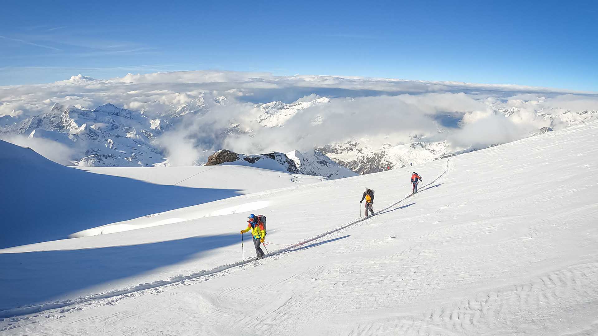 Skialpinismus na italské straně Alp v oblasti Wallis / Valle d’Aosta