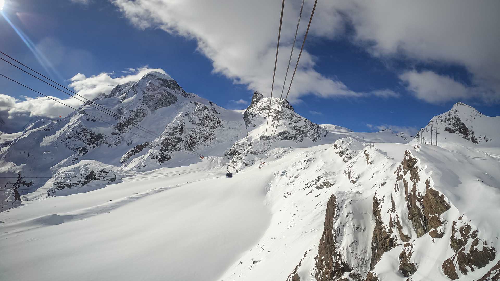 Výhledy na ikonické vrcholy: Matterhorn, Lyskamm, Dufourspitze, Mont Blanc