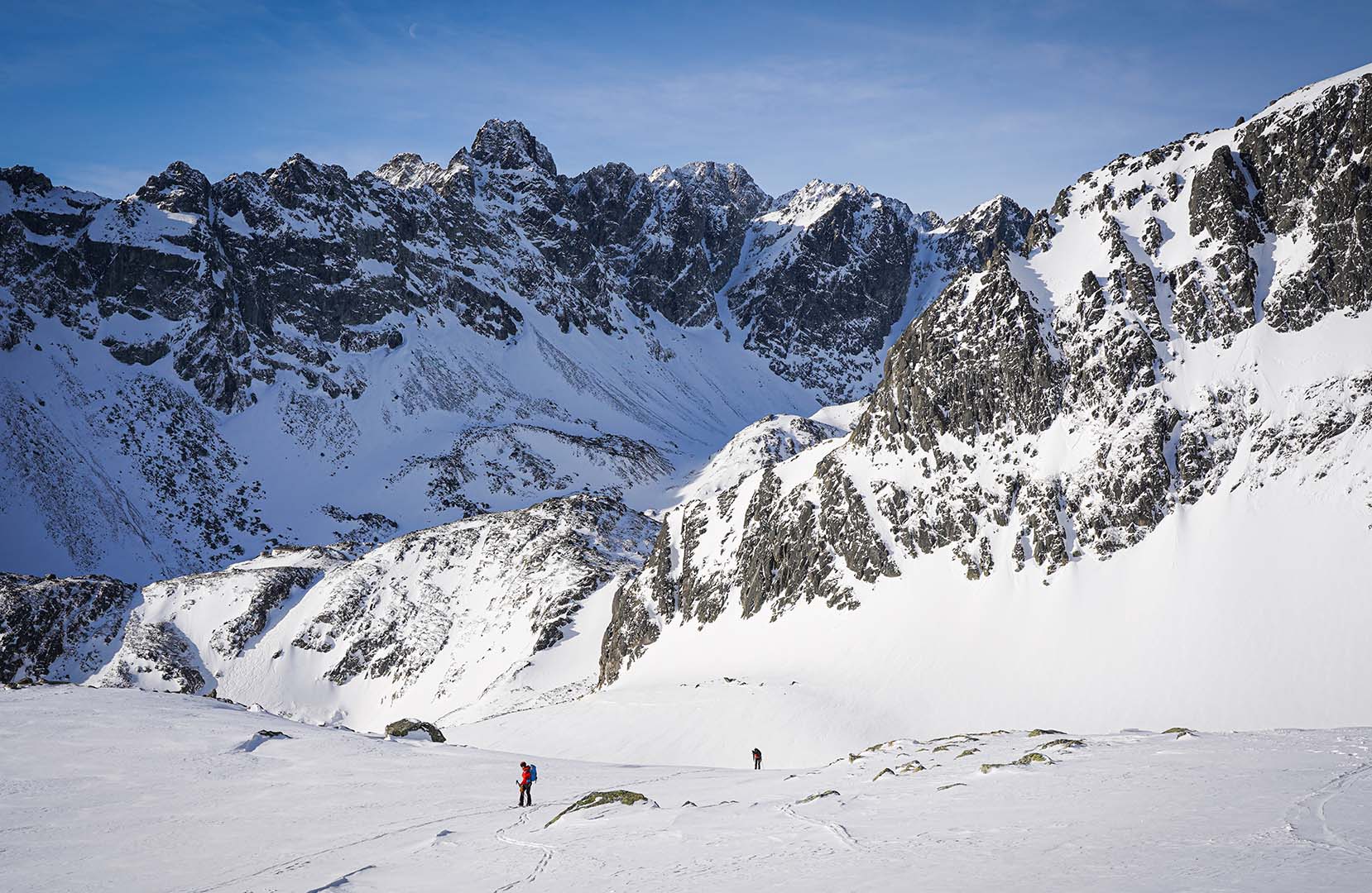 V létě turistická výzva, v zimě drsný výstup na mačkách a exponovaný sjezd – Východná železná brána, Prielom, Priečne sedlo, Baranie sedlo.